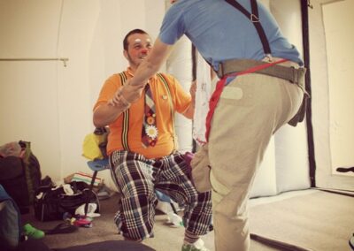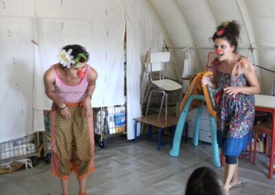 Per tutta l’estate una squadra di clown ha allietato i bambini dei campi Costa, Valle D’Aosta, Friuli e Molise delle frazioni di Mirandola e Medolla in provincia di Modena, due dei paesi maggiormente colpiti dal terremoto dello maggio 2012 che ha sconvolto l’Emilia.