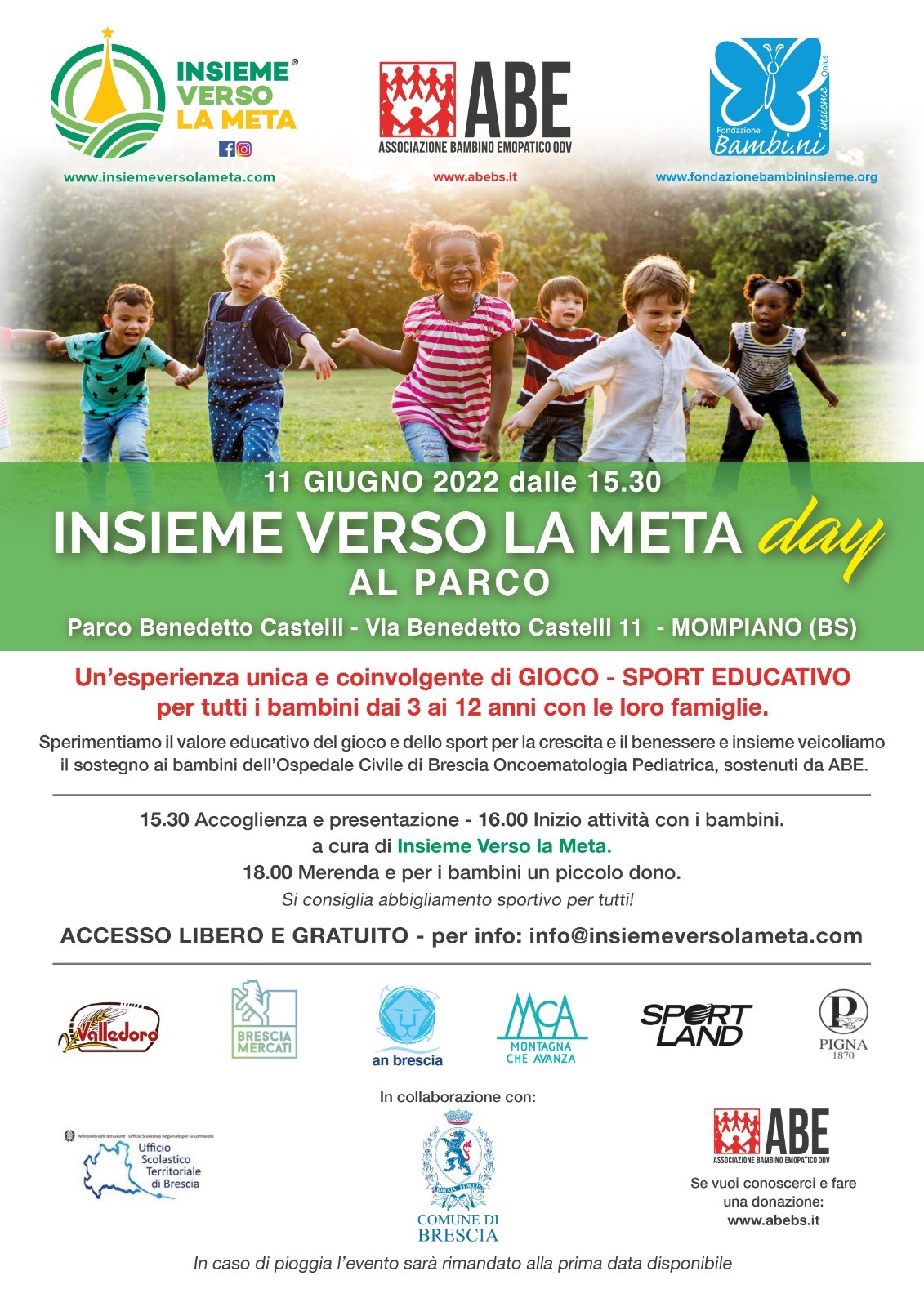 In nome della solidarietà e del gioco responsabile, l’11 giugno 2022 si è svolta a Mompiano (BS) una giornata dedicata alle attività educative e ludiche di Insieme verso la meta, associazione che propone una maniera diversa e più consapevole di far fare sport ai più piccoli.
