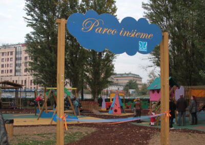 Fondazione Bambi.ni insieme si è impegnata e, grazie al generoso sostegno delle molte donazioni ricevute, è riuscita a realizzare tutto questo. Finalmente tanti bambini e ragazzi sono tornati ad avere un luogo dove ritrovarsi, giocare e imparare a stare… insieme! Giochi, arredo urbano (panchine, tavoli, gazebo…), pavimentazione antitrauma, canestri da basket. Un luogo per vivere all’aria aperta momenti di svago e di relax!